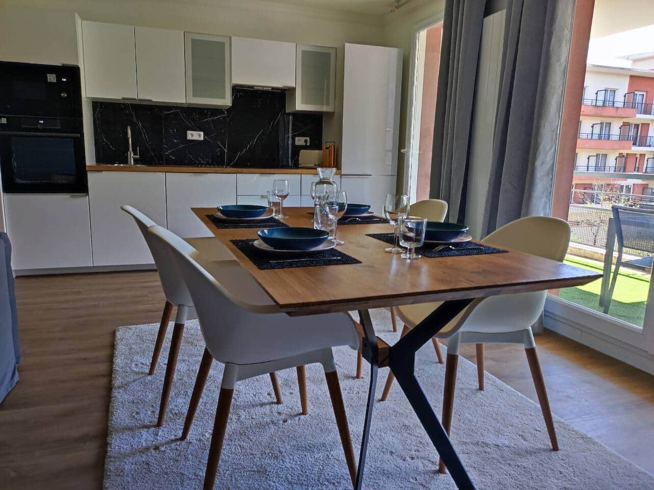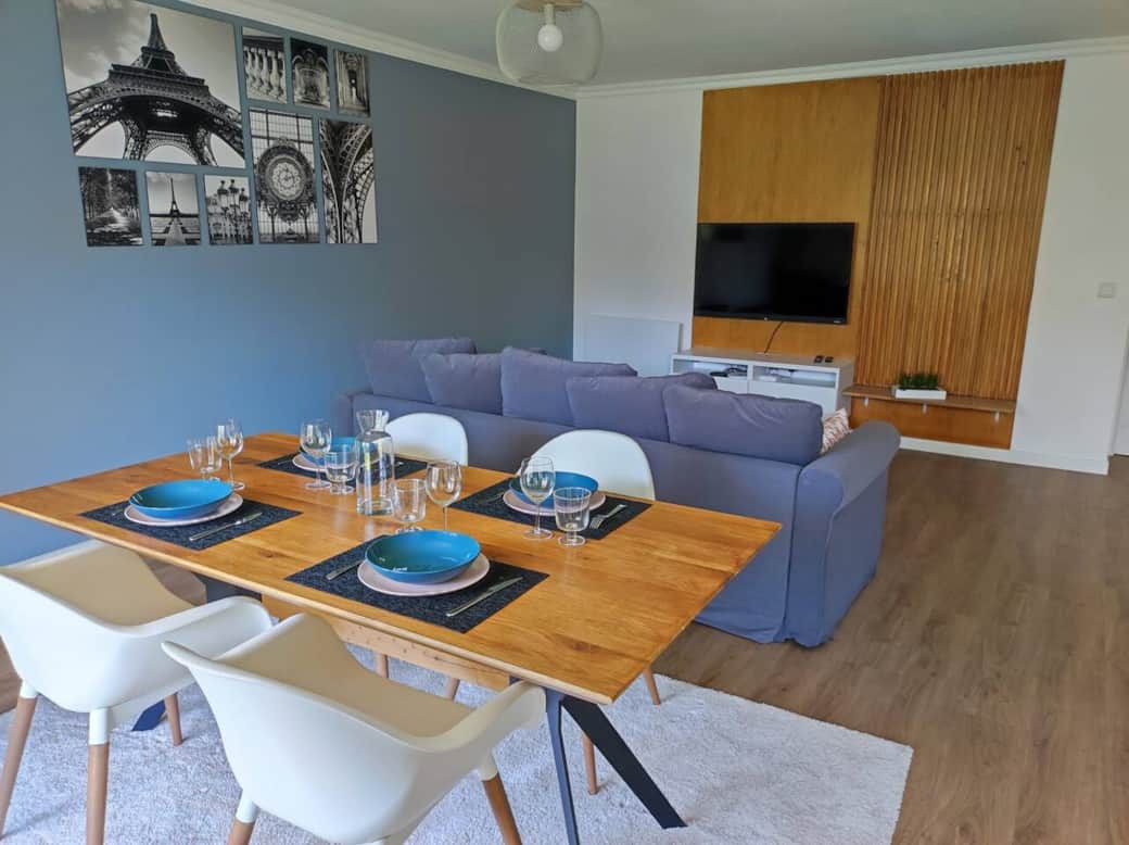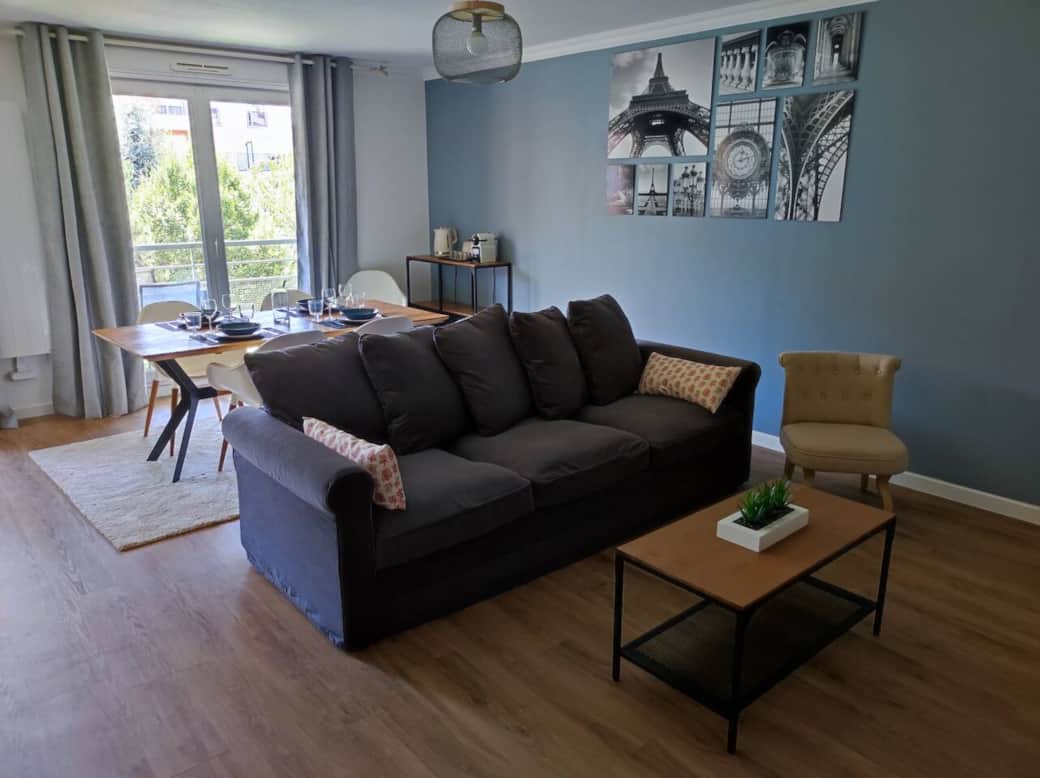 En choisissant cet appartement situé au plein cœur d'Evry et à 2 minutes de la gare, vous serez à 35 min du centre de Paris par le train. Le logement, meublé avec soin, est fait pour que vous vous y sentiez comme chez vous. Vous pourrez y entrer de manière tout à fait autonome grâce au système de serrure connectée. Vous disposerez d'un accès WIFI haut débit gratuit. Les draps et serviettes sont également fournis. Votre hôte, Dina, sera disponible tout au long du séjour pour vous aider. Appartement de 63m2 composé de : • Une chambre équipée d’un lit double avec des rangements. • Une chambre équipée de deux lits simples avec des rangements. • Un double salon doté d’un canapé, TV, tables à manger 6 places • Une cuisine ouverte sur le salon entièrement équipée ( Lave-linge, machine à café Nespresso, bouilloire, micro-onde) • Une salle de bain, avec douche, sèche serviettes et WC séparés. • Une terrasse avec vue sur le ârc de la résidence + table et chaises de jardin Une place de parking fermé et sécurisé en sous-sol avec accès direct à la résidence est également disponible gratuitement. les voyageurs peuvent me joindre par téléphone ou sms Le logement est dans un quartier central et moderne à Evry. Il est proche de toutes les commodités, train, Tramway, Bus, Pharmacie, etc... A 3 minutes à pied vous trouverez le centre commercial régional Évry 2 qui compte 225 boutiques, dont un hypermarché Carrefour de 24 700 m2, Il accueille aussi de nombreux lieux de restaurations dont plusieurs fast-food. A quelques minutes à pieds vous trouverez également la Cathédrale et la mosquée d'Evry.
